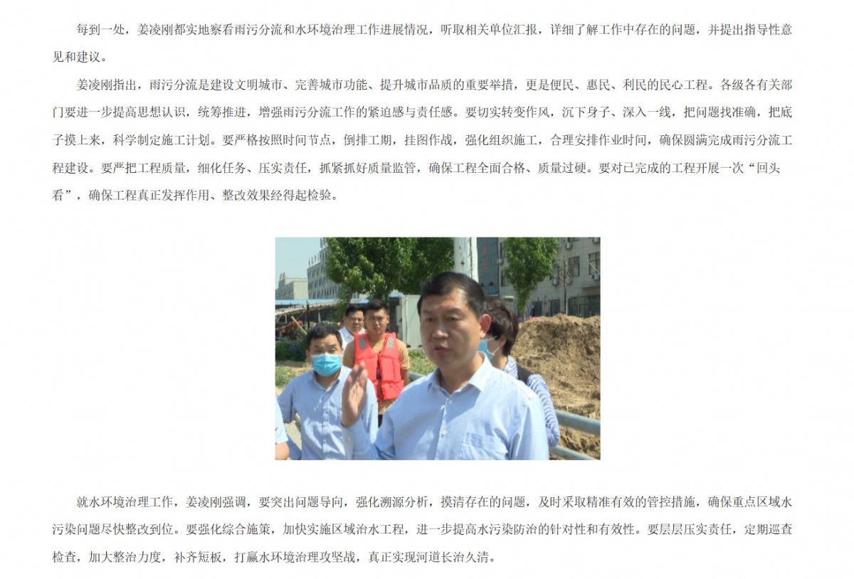 5月6日,縣委書記姜凌剛及縣領(lǐng)導(dǎo)段文龍、徐龍杰、王昌濤、曹運國、鄭發(fā)奎等有關(guān)部門負責人視察我司施工的雨污分流及水環(huán)境治理施工項目。