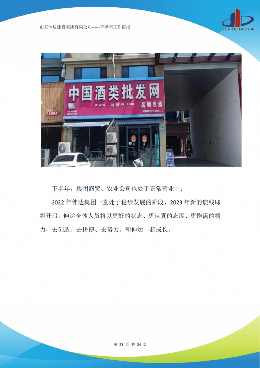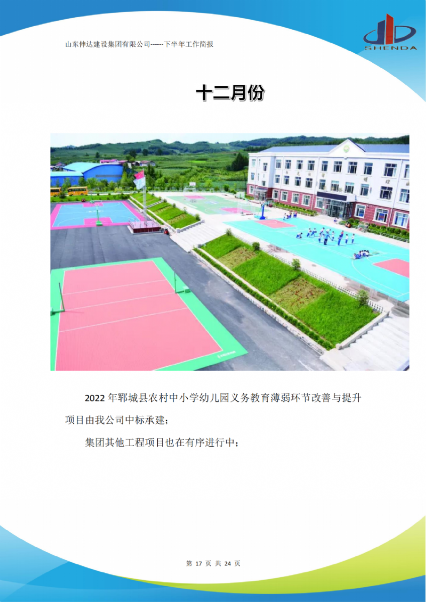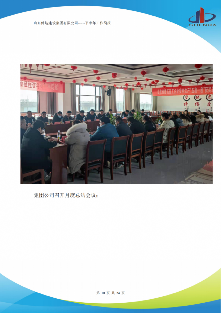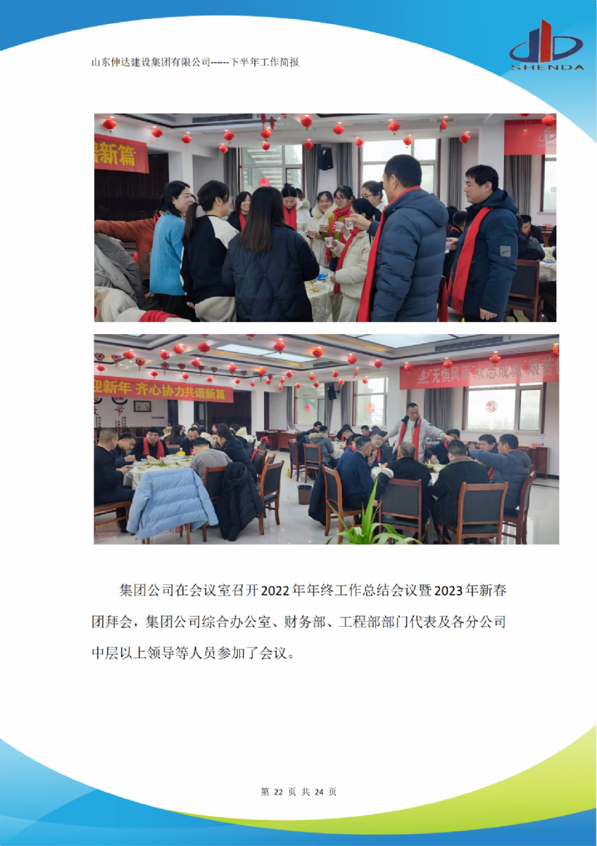 山東伸達(dá)建設(shè)集團(tuán)有限公司------下半年工作簡(jiǎn)報(bào) 2023-1-21 本文被閱讀 3007 次