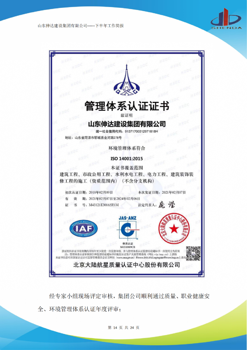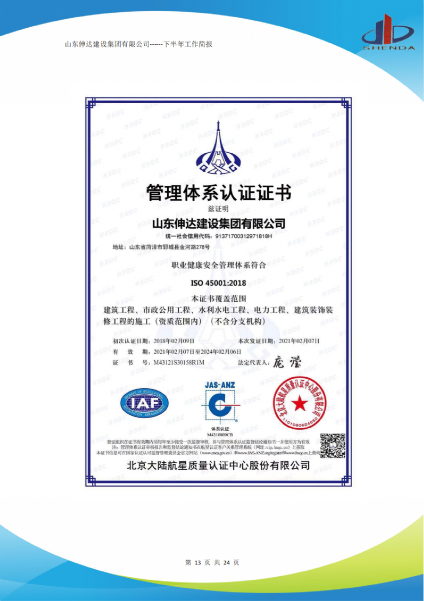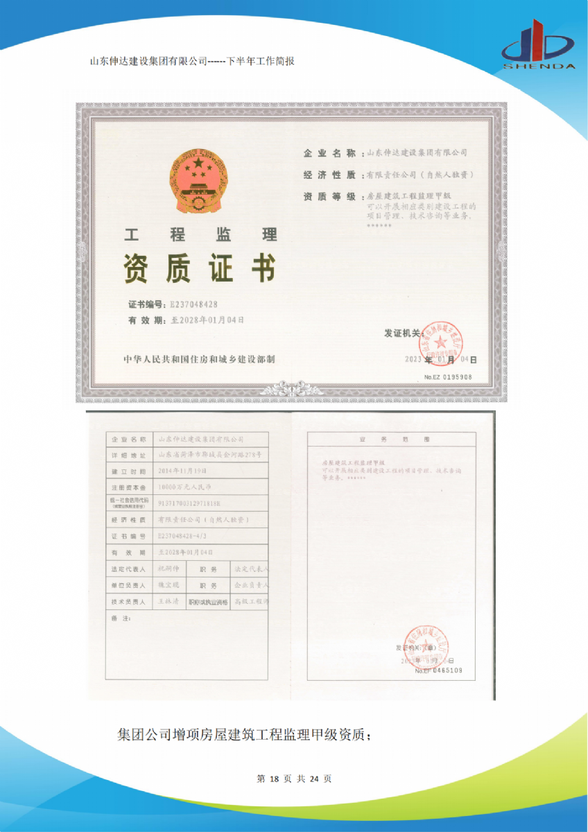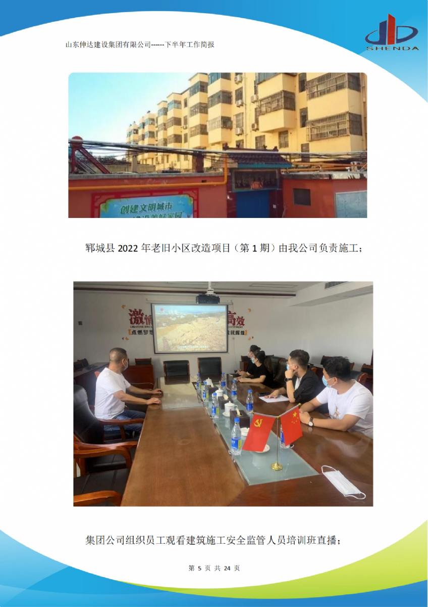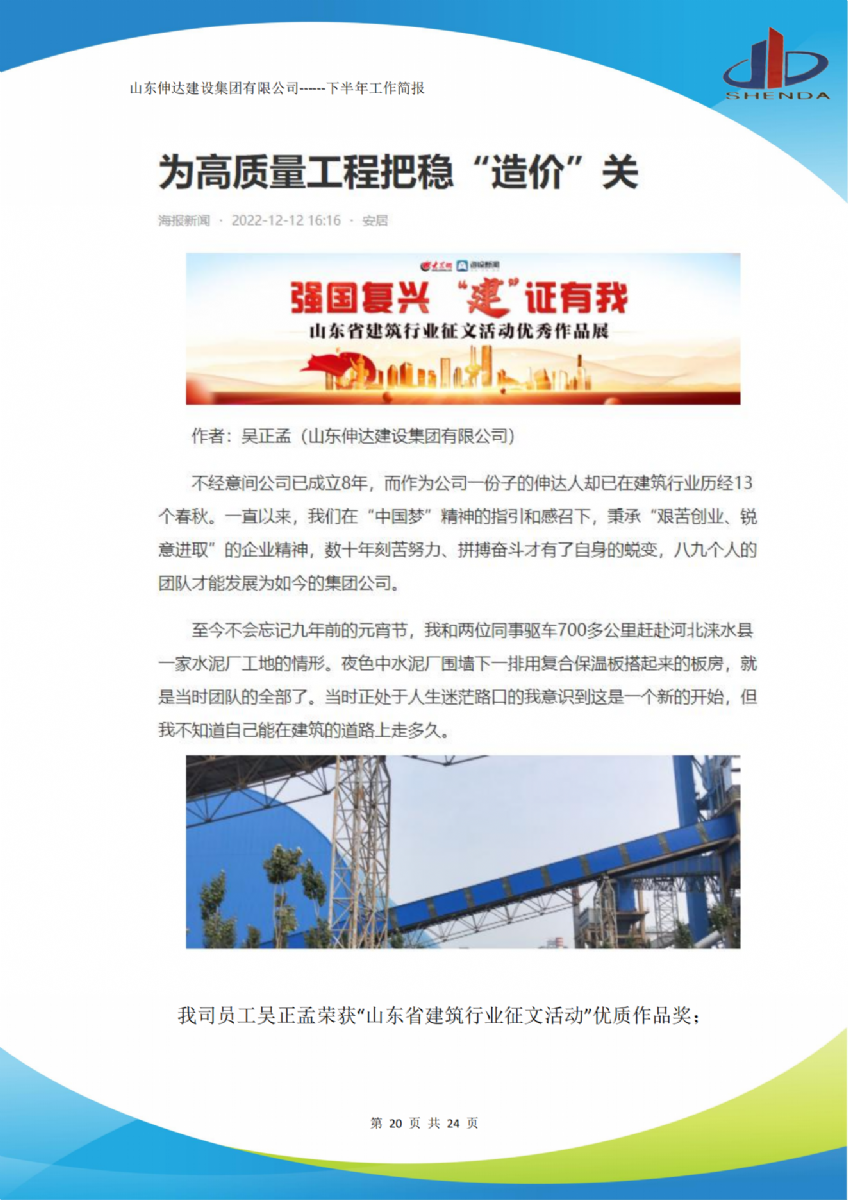 山東伸達(dá)建設(shè)集團(tuán)有限公司------下半年工作簡(jiǎn)報(bào) 2023-1-21 本文被閱讀 3007 次